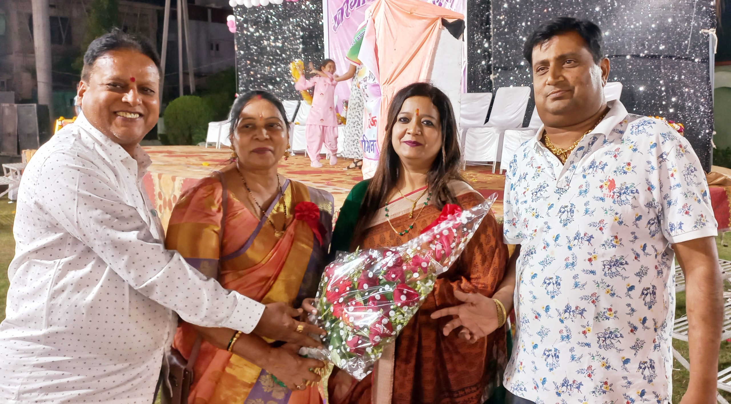 मोमीस ग्रुप खरगोन के राधा कुंज परिसर में आयोजित कार्यक्रम में मोमीस ग्रुप की अध्यक्ष शुभा खोड़े का स्वागत और बधाई देते स्वतंत्र पत्रकार संतोष गुप्ता और समाजसेवी किरण गुप्ता ! शुभा खोड़े जिस प्रकार से खरगोन शहर की महिलाओ को मंच दे रही है , समाज सेवा कर रही है , मेरे विचार से आगामी विधानसभा में विधायक के लिए भारतीय जनता पार्टी ने शुभा को अवसर देना चाहिए , शुभा युवा है , सोशल मीडिया को शानदार हेंडिल करती है , ऊर्जावान है , मैं मध्यप्रदेश जनता पार्टी के शीर्षस्थ नेताओ का ध्यान शुभा की ओर आकर्षित करना चाहूंगा क्युकी बी जे पी में कोई भी पुरुष नेता की छवि अच्छी नही है , आशा है भारतीय जनता पार्टी मेरी बात पर चिंतन करेगी ! चित्र में शुभा के साथ उनके पति नीलेश जी है !