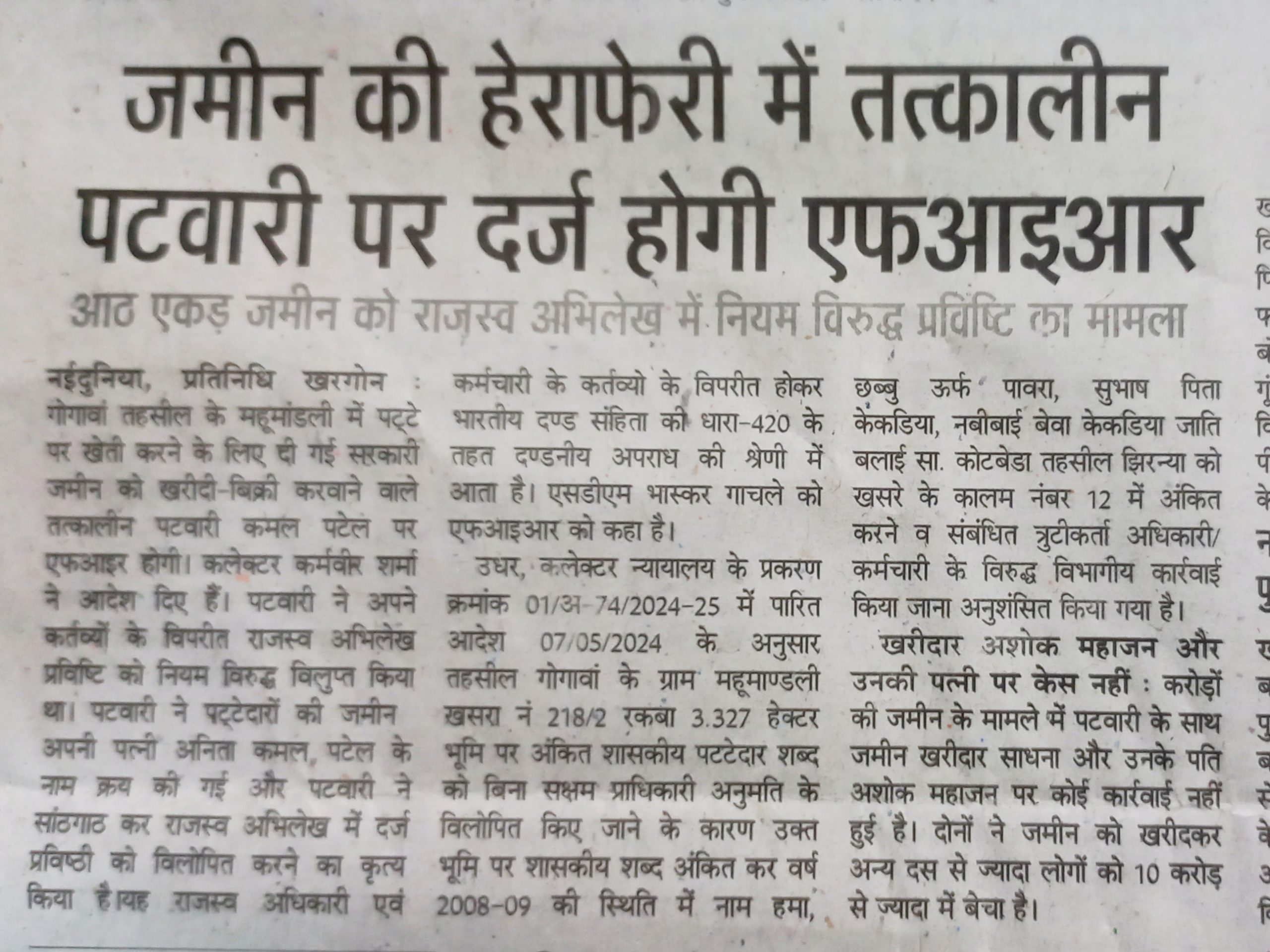 : किरण पटेल , साधना महाजन और अनीता महाजन खरगोन पर सरकारी कृषि भूमी की फर्जी तरीके से खरीद और बिक्री का आरोप !