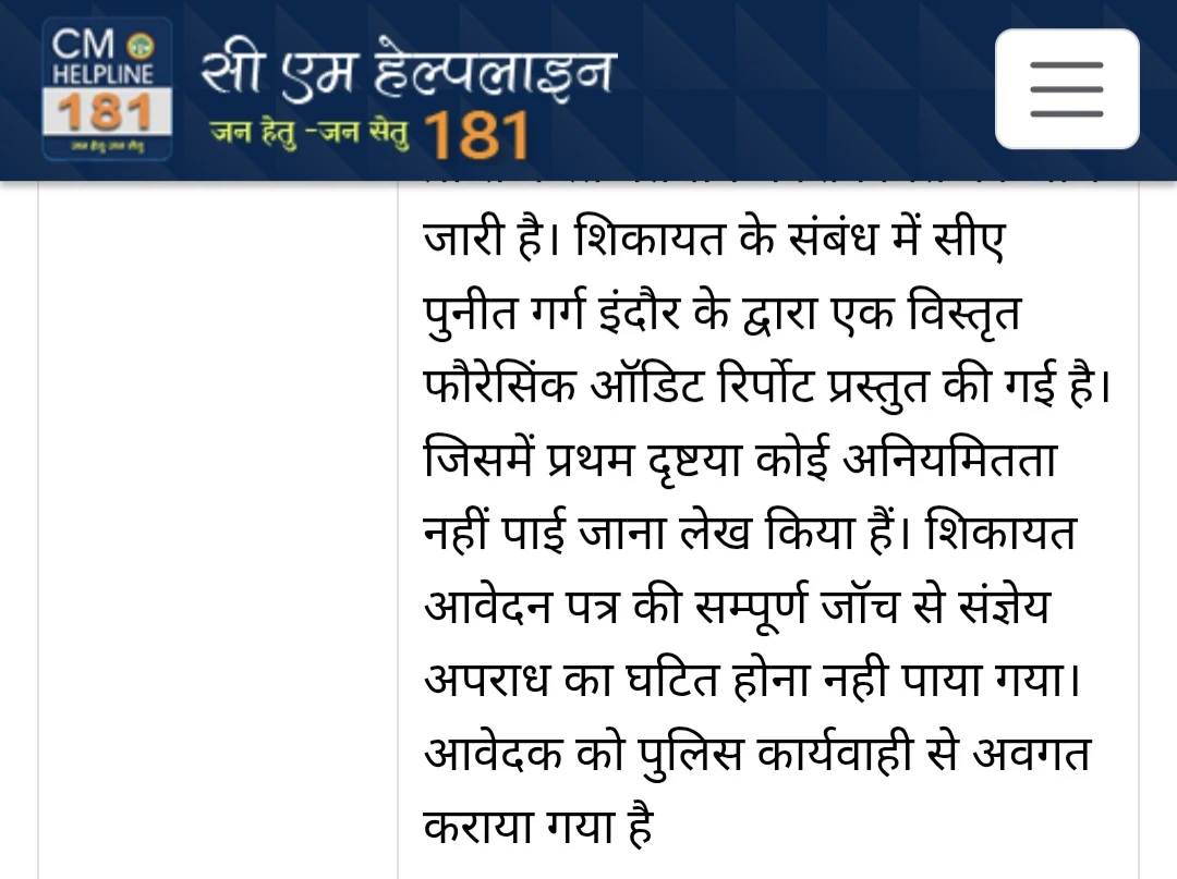 भारत सरकार का पी एम ओ, मध्यप्रदेश सरकार की सी एम हेल्प लाइन, भोपाल का इ ओ डब्ल्यू और कम्पनी के निवेशकों की 500 शिकायतें दर्ज हुई तो जांच करने वाले खरगोन के पुलिस अधीक्षक धर्मराज मीना तक को सरकारी शिक्षक रविशंकर महाजन की तीनों कम्पनी में कोई अनियमितता नहीं मिली!