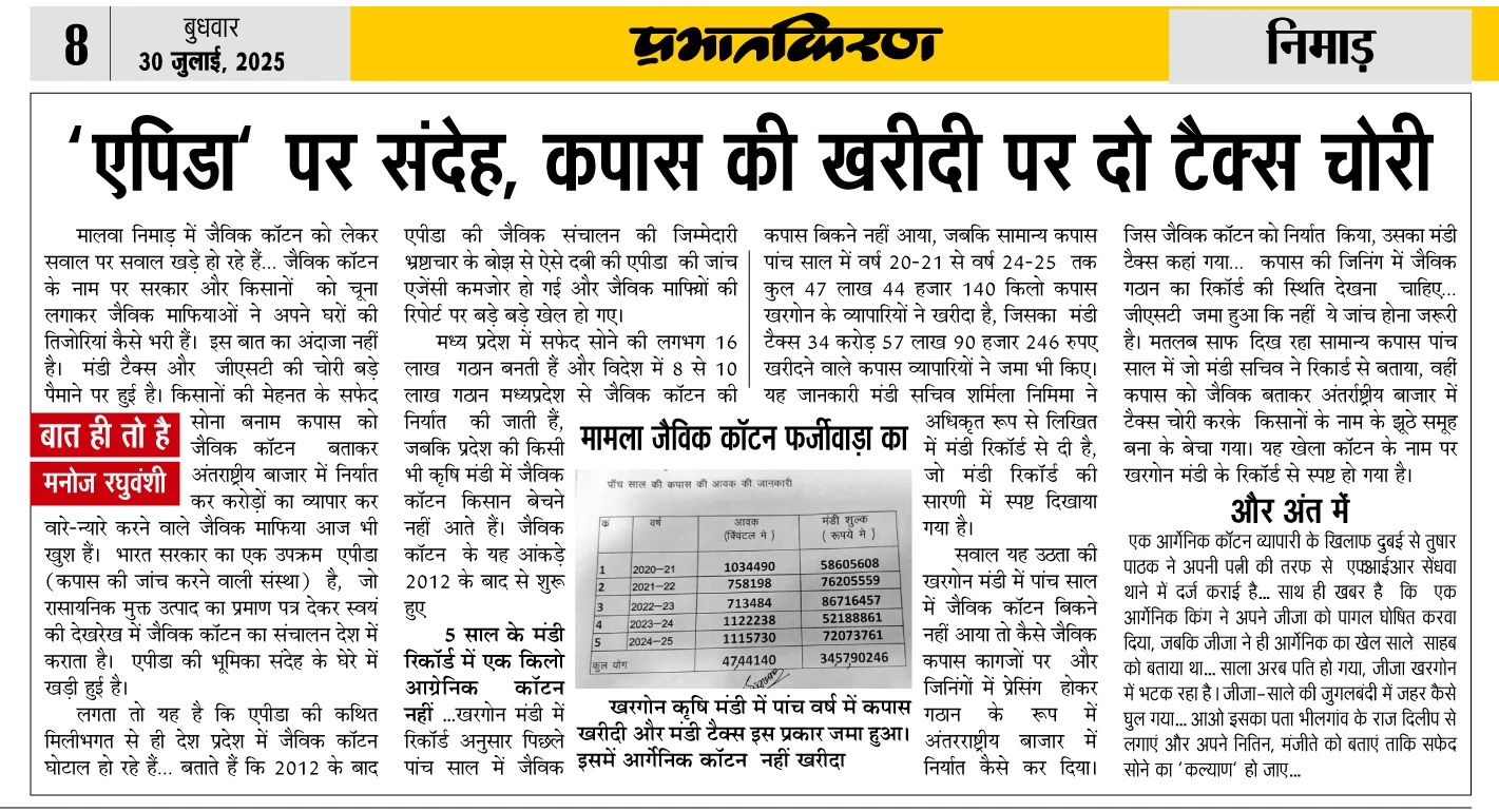 खरगोन में चर्चा ! : आर्गेनिक काटन में अब कौन ?